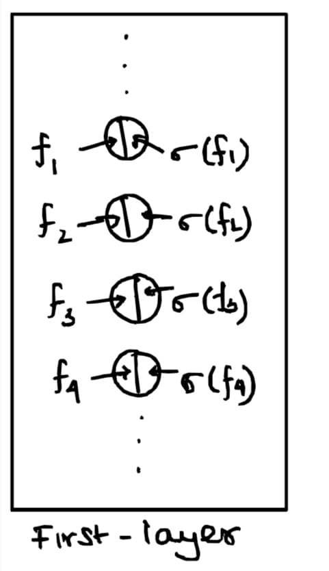 And finally, for any $(m+1)$-th layer like so, we wrap up the function in the sigmoid so that we can model the 'activated'/post-activation function that rests in each of the neurons in the layer itself. $$N_{m+1}^{\sigma} = \lbrace \sigma \circ g | g \in N_{m+1} \rbrace$$