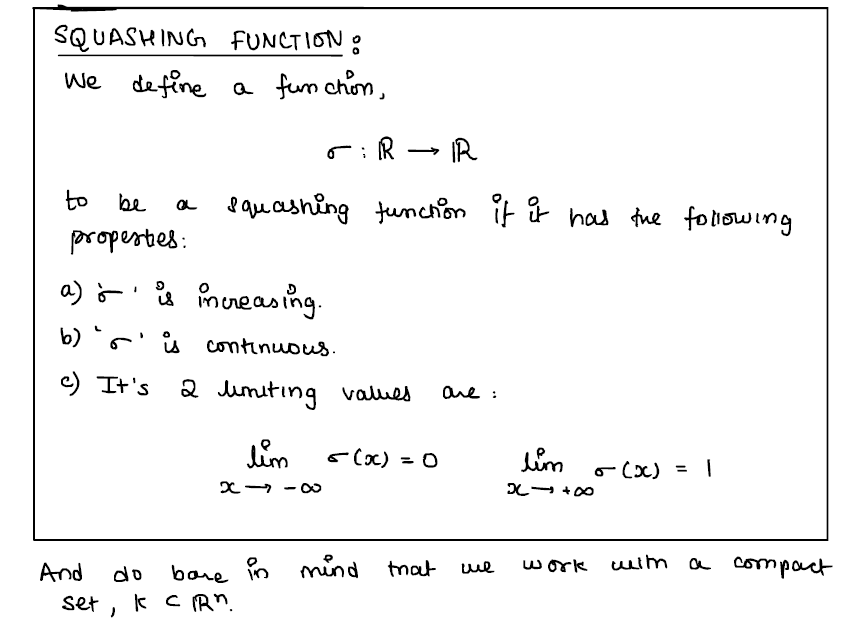 Now, by composition of functions, as our squashing-function is continuous, we can model the set of all possible 'activated'/post-activation functions for each of the neurons as: $$N_{1}^{\sigma} = \lbrace \sigma \circ f | f \in N_{1} \rbrace$$