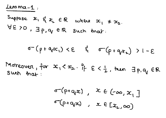 The first lemma is what I imagine as the '$\sigma$'-lemma. The idea behind this lemma is that, for a squashing function, it will basically act as a 'point-separator'. The lemma, when stated, goes as so: