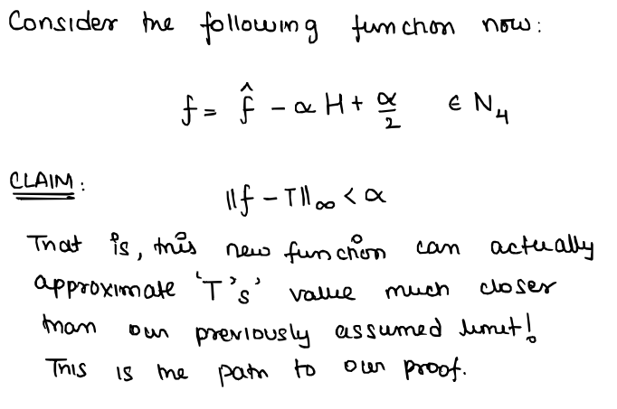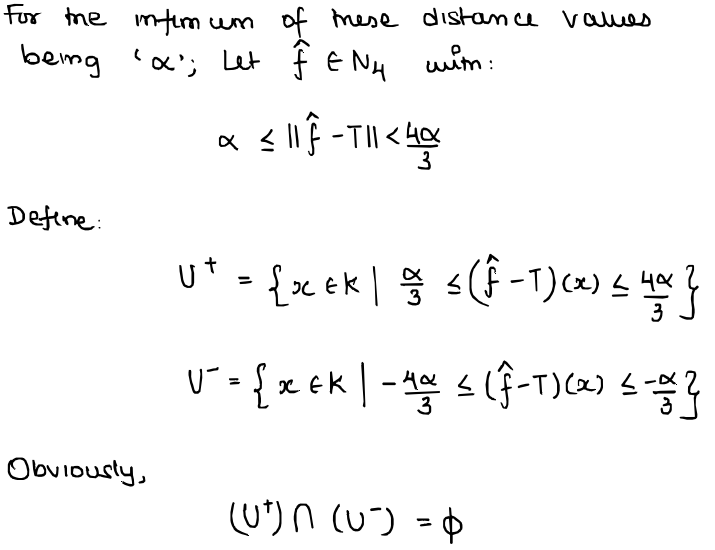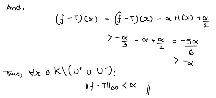 ...but note that $f \in N_{4}$ and $\| f - T\|_{\infty} < \alpha$. Thus, we obtain our contradiction and we're done!